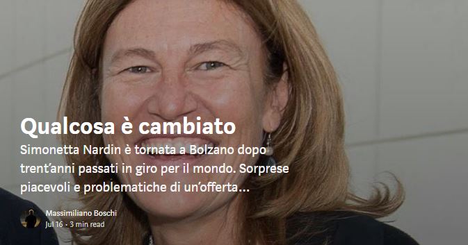 Simonetta Nardin è tornata a Bolzano dopo trent’anni passati in giro per il mondo. Le sorprese piacevoli e le problematiche di un’offerta culturale fin troppo ricca (SEGUE)