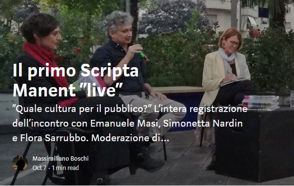 “Quale cultura per il pubblico?” L’intera registrazione dell’incontro con Emanuele Masi, Simonetta Nardin e Flora Sarrubbo. Moderazione di Massimiliano Boschi.(SEGUE)